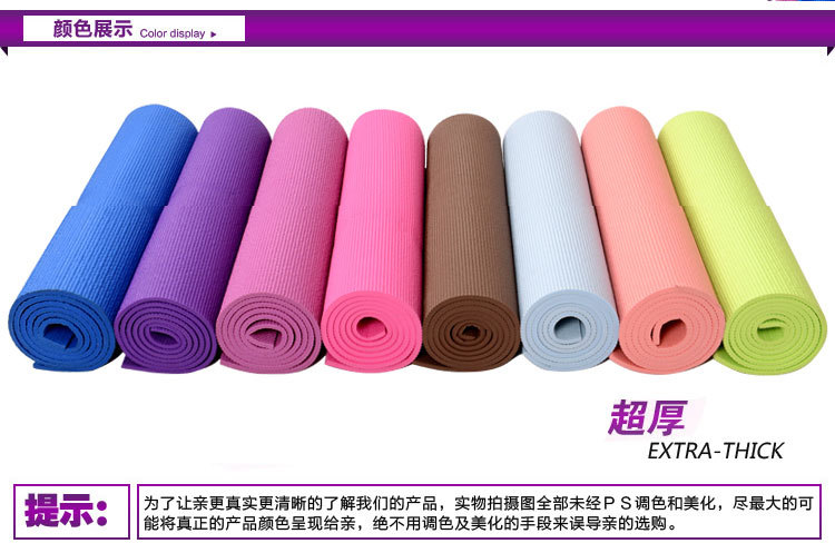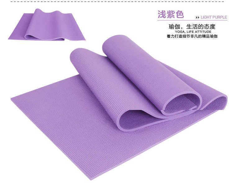 本产品PVC含量达96%,内有高韧性防拉网,很好地加强瑜伽垫的抗张力,是市场上同类产品中的佼佼者!且外销欧美很受好评。随着国内对健身用品要求的增高,此产品专为瑜珈爱好者设计!长:173cm,宽:61cm厚:3~8mm紫色,天蓝色,深蓝色,橙色,粉红,草绿等各种颜色,垫子具备以下优势: